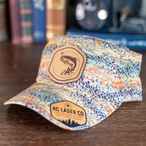 Each 1 of 1 hat from KC Laser Co is meticulously handcrafted and designed to be completely unique. We carefully pair premium hat styles, custom leather patches, and distinctive materials to create a hat that will never be replicated.