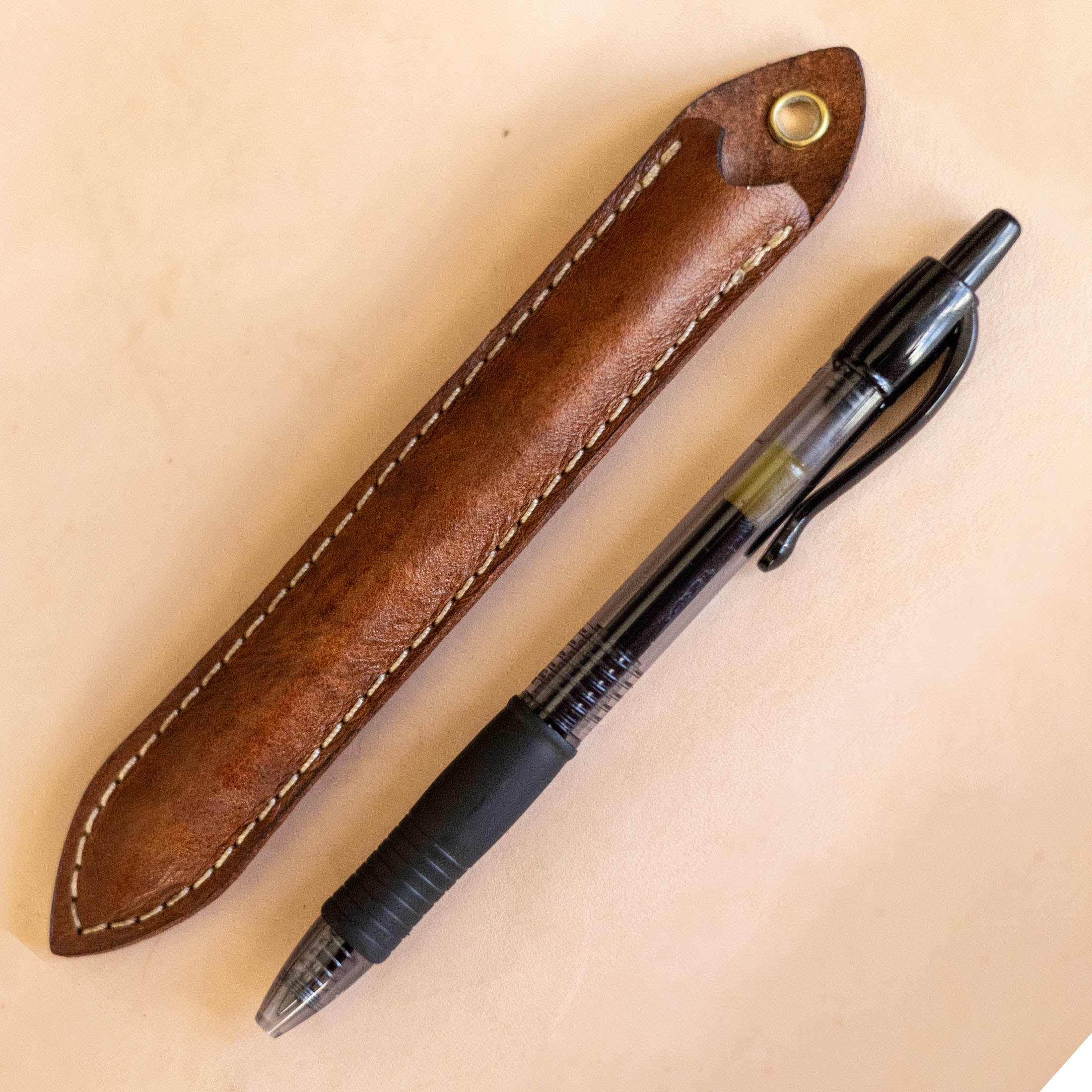 Brown Leather Sleeve with Pilot G2 Pen